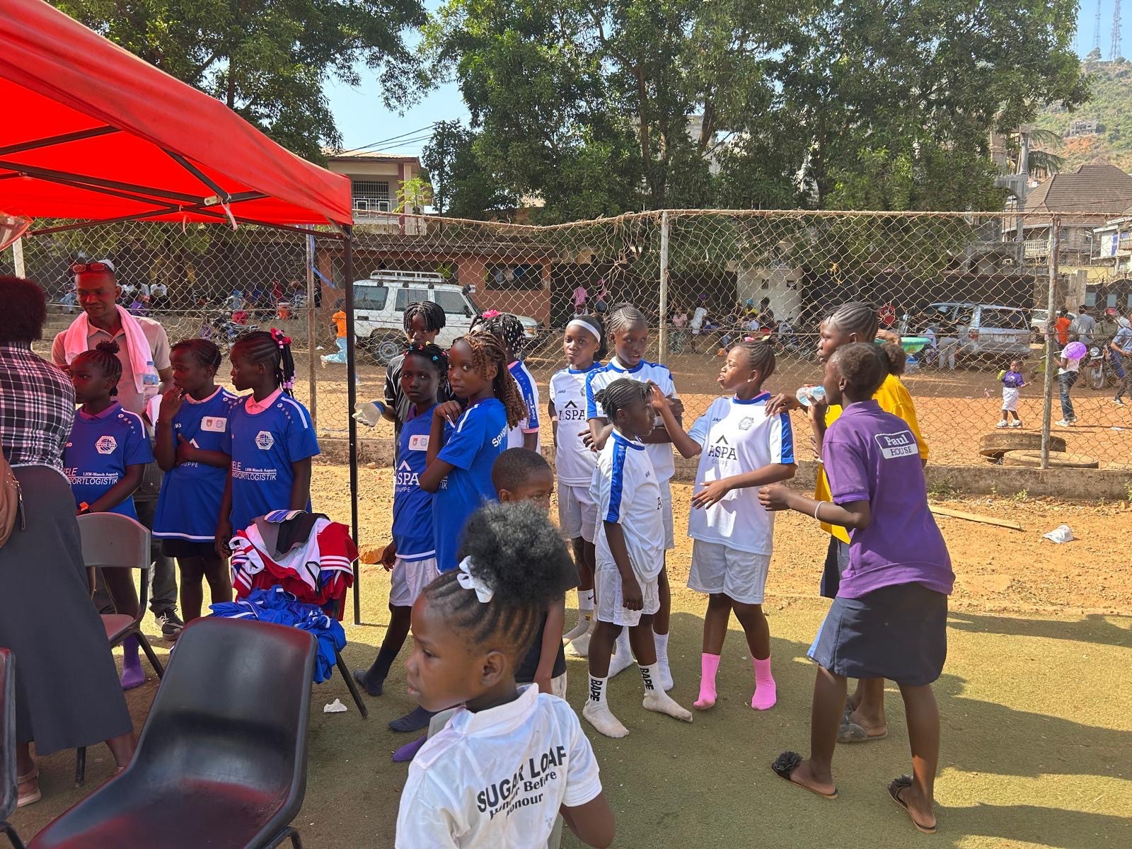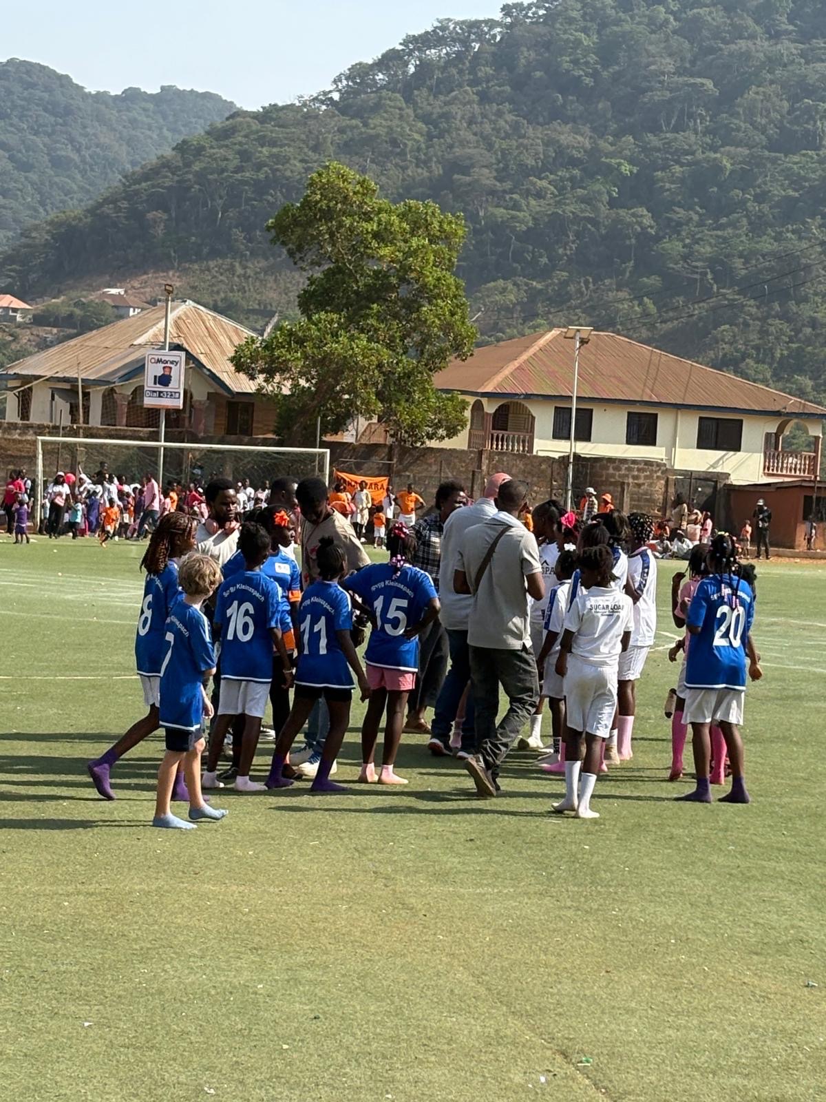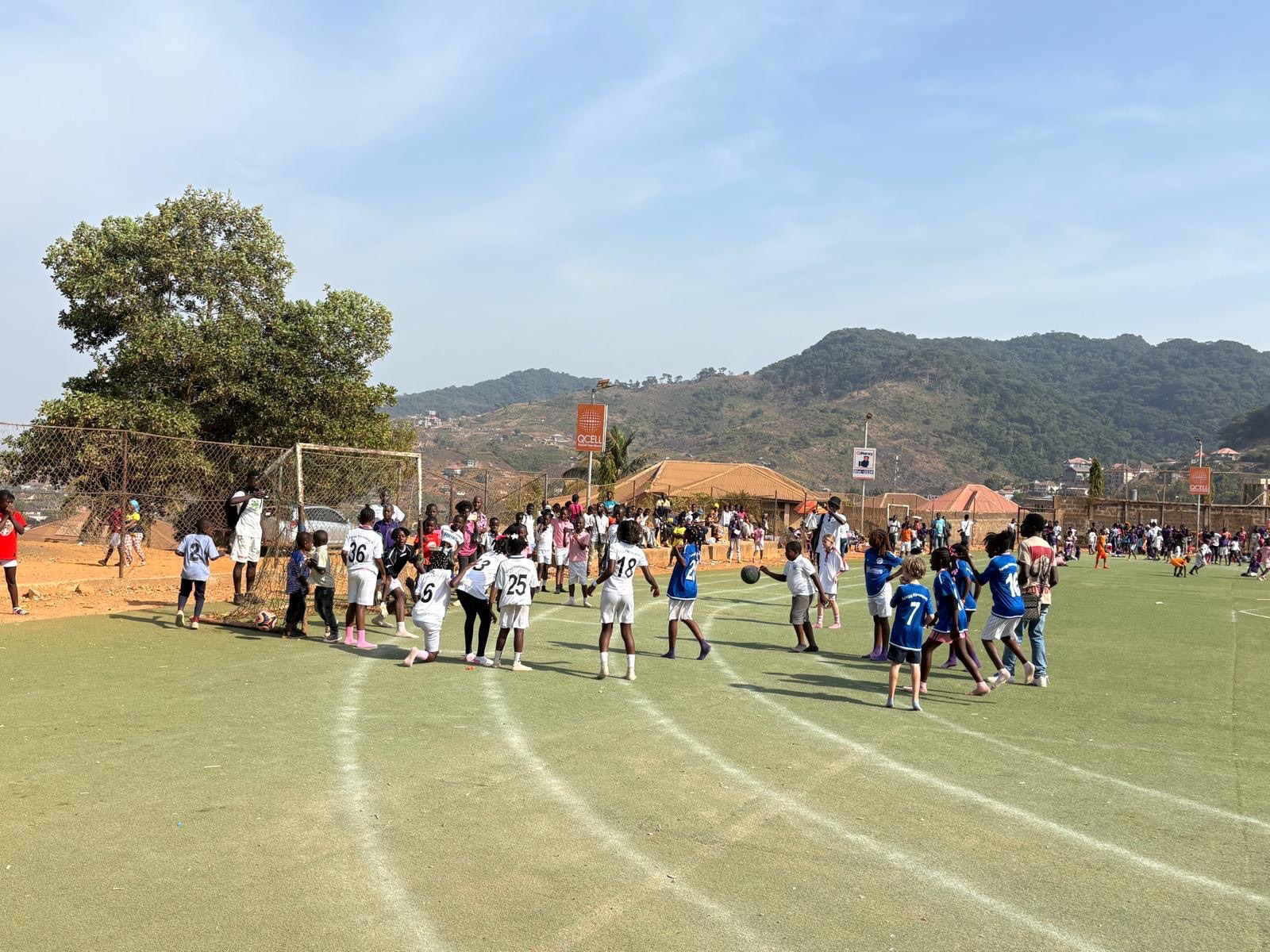 Ein besonderes Highlight des Besuchs: Ein Schulfest mit Fußballturnier, bei dem die Begeisterung für Fußball – eine der beliebtesten Sportarten in Sierra Leone – deutlich zu spüren war. Genau dort konnten die gespendeten Trikots an die Spielerinnen und Spieler übergeben werden.